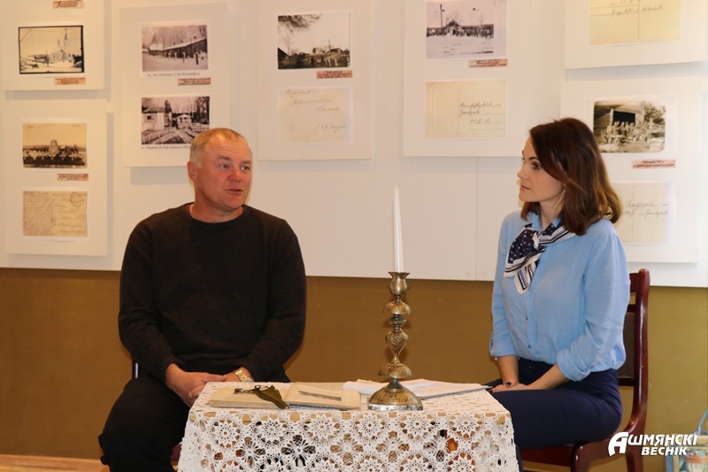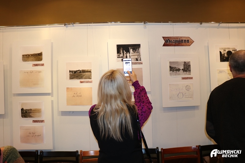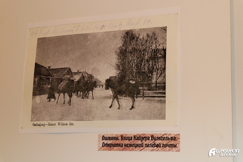 Впервые в нашем городе экспонируются фотографии, почтовые карточки из личной коллекции крупнейшего коллекционера Первой мировой войны Владимира Богданова. На них — узнаваемые и сегодня уголки Ошмян, Гравжишек, Борун, Горецковщины, Михайловщины, Бенюн, Станции Ошмяны, Гольшан, запечатленные 100 лет назад.
