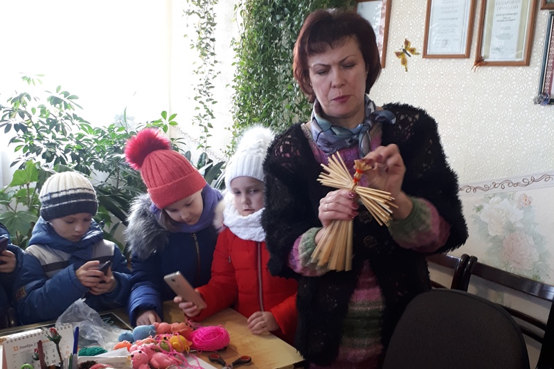 Напрыканцы экскурсіі мы сталі актыўнымі ўдзельнікамі майстар-класа па вырабе саламянай птушкі, якая па вер’і прыносіла дабрабыт і шчасце.
