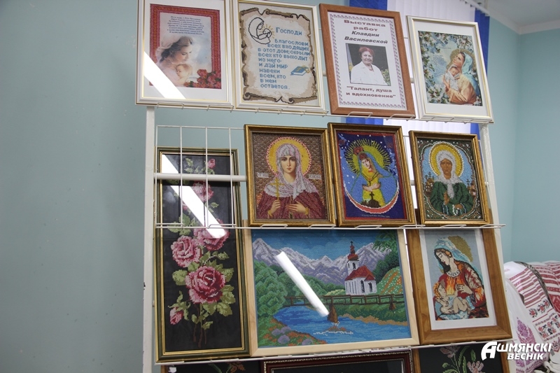 Разглядаючы цудоўныя вышываныя карціны Клаўдзіі Васілеўскай, усведамляеш, колькі цікавых і таленавітых людзей мы сустракаем на сваім шляху. Яны напаўняюць наша жыццё яркімі фарбамі, станоўчымі эмоцыямі і душэўным цяплом. Усё гэта ў свае працы ўклала і Клаўдзія Маркаўна. Сярод цудоўных рознакаляровых выяў жывёл і людзей можна ўбачыць невялікі сілуэт Леніна ў шэрых танах… Клаўдзія Маркаўна расказвае, што вышыла яго ў шасцідзясятых гадах, але шкада было развітвацца з гэтай працай, таму і захавала. Пачэснае месца ў хатняй калекцыі займаюць карціны па рэлігійнай тэматыцы, некаторыя з іх жанчына аздобіла пацеркамі і бісерам. Большасць цудоўных работ з выявамі святых майстрыха паспела асвяціць у храме.