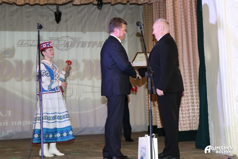 Он вручил Ошмянскому филиалу «Автопарк №13» документы на право приобретения нового пассажирского автобуса. Нагрудным знаком «Ганаровы транспортнік» был награжден водитель автомобиля пассажирской колонны Станислав Гайдукевич, Почетной грамотой Министерства транспорта и коммуникаций Республики Беларусь награжден водитель пассажирской колонны Генрих Якубелович. Почетной грамоты Гродненского облисполкома за многолетний добросовестный труд удостоена главный бухгалтер Валентина Родик, Почетной грамоты ОАО «Гроднооблтранс» — старший кассир Анна Янушкевич, водитель грузовой колонны Виктор Чернявский.