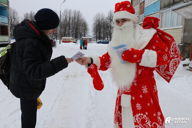 В Ошмянском районе в рамках очередного этапа республиканской акции «Безопасный Новый год» Дед Мороз из МЧС вышел в город, чтобы рассказать населению профилактических мерах, направленных на предупреждение пожаров в период новогодних праздников.