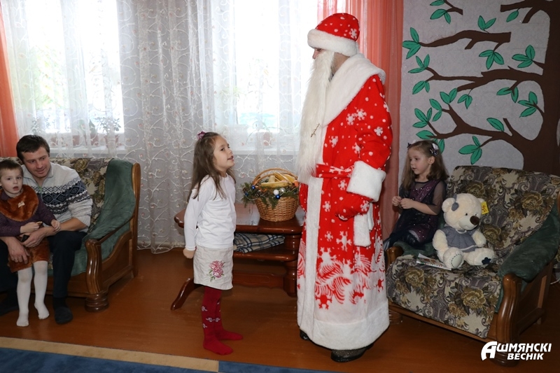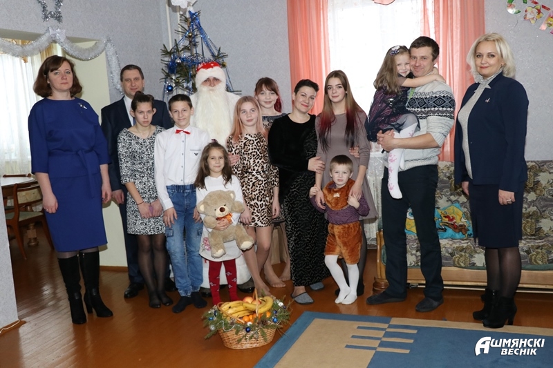 Теплые слова пожеланий адресовали ребятам и их родителям председатель Ошмянского райисполкома Мирослав Саросек, его заместитель Наталья Станкевич, начальник управления образования Светлана Барковская. Кроме искренних поздравлений, дети, которые воспитываются в семьях Татьяны и Иосифа Мицкевичей, Николая и Елены Поповых, Екатерины и Владимира Рябоконей, принимали сладкие лакомства к новогоднему столу.