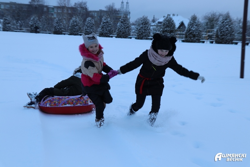 Сапраўды, хіба можна ўсядзець дома, калі на заснежанай горцы шум і смех?! Здаецца, там сабраліся ўсе сябры. Адныя катаюцца на санках, новамодных ватрушках і лядзянках, другія пайшлі на каток.