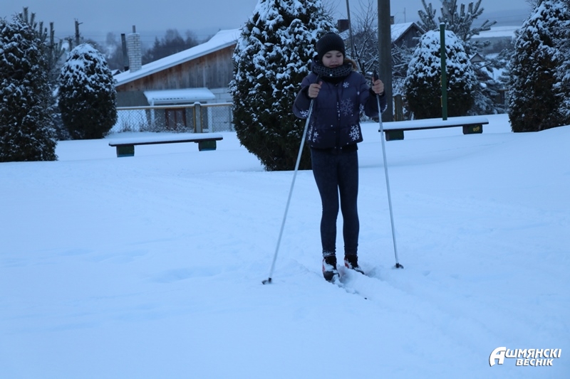 — Вось прабегла першы круг па школьнай лыжні і вельмі задаволена. Хаця не магу сказаць, што ён даўся надта лёгка — снег крыху ліпне. Сёння і ўсе наступныя дні мы з дзяўчатамі па камандзе будзем рыхтавацца да зімовага шматбор’я, у праграму якога ўключаны лыжы. Так што сумяшчаем прыемнае з карысным.