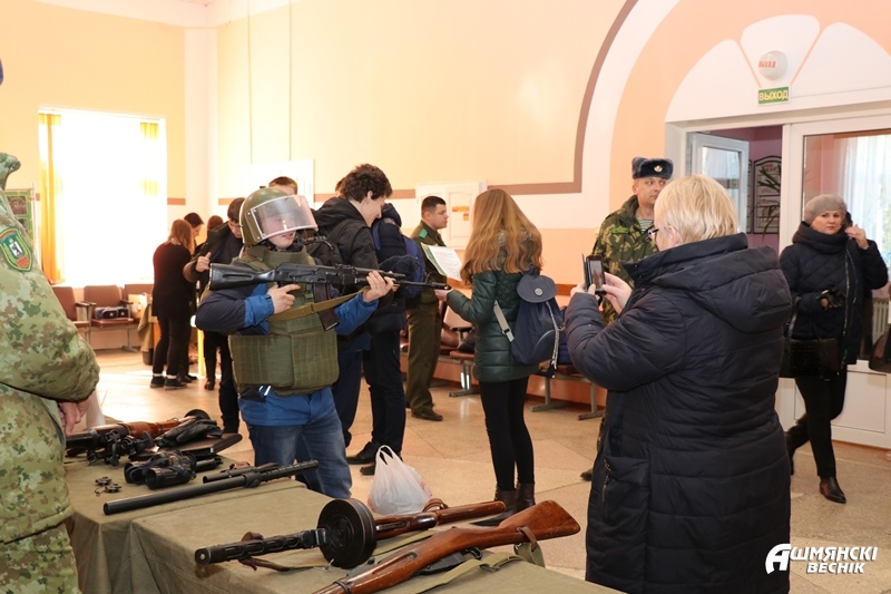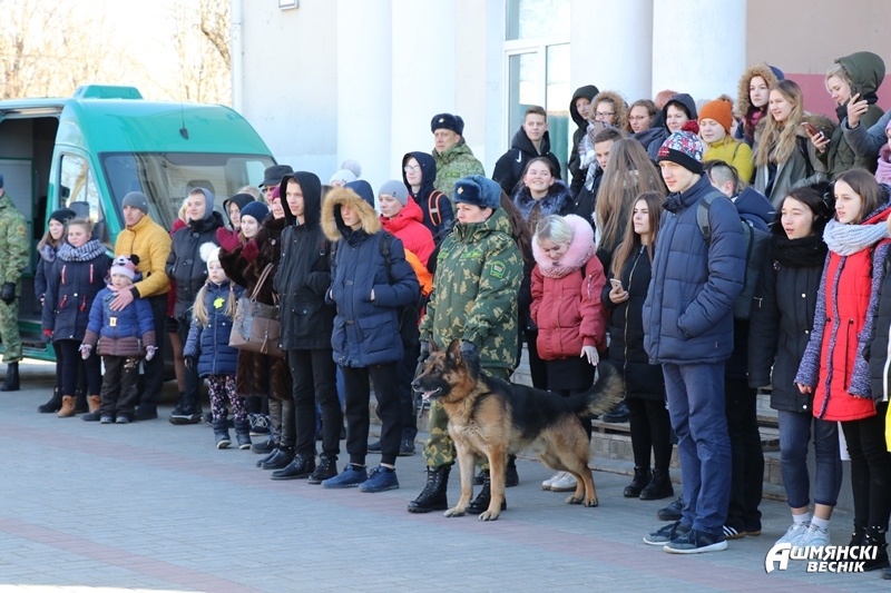 Для школьников и учащихся колледжа было организовано показательное выступление кинологов кинологического центра. Ошмянцы могли познакомиться с собаками, которые несут службу на границе. Кинологи, занимающиеся их дрессировкой, рассказали о своих подопечных и поделились секретами воспитания питомцев. Также специально для будущих призывников было организован просмотр видеороликов об Институте пограничной службы, а военнослужащие познакомили ребят с профессией пограничника.