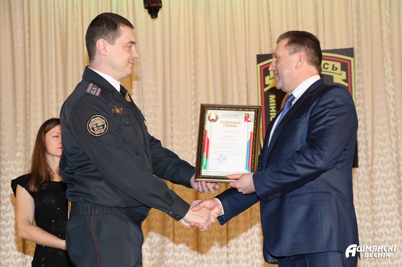 С профессиональным праздником поздравил присутствующих в зале правоохранителей и поблагодарил за обеспечение правопорядка в районе председатель райисполкома Мирослав Саросек:
