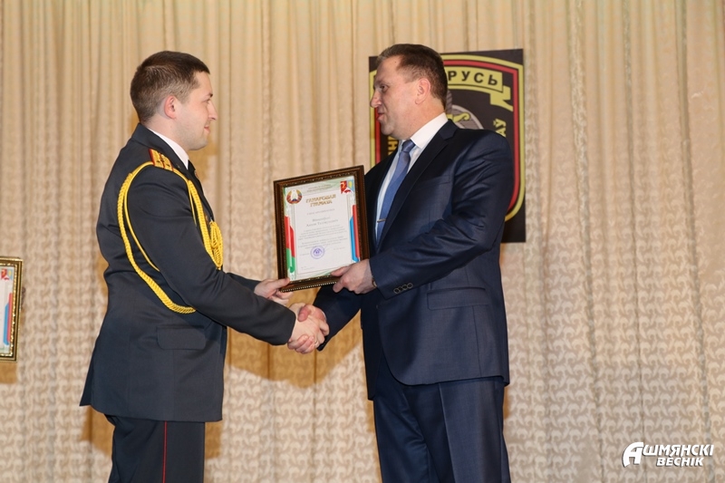 Удачи и успехов на профессиональном поприще пожелали правоохранителям председатель районного совета директоров, директор ОАО «Агропромтехника» Генрих Бубен, начальник районного отдела Следственного комитета Виктор Мацевич, начальник районного отдела Департамента охраны МВД Иван Вержинский, начальник РОЧС Андрей Горбач, начальник межрайонного отдела Государственного комитета судебных экспертиз Валерий Голомбовский, прокурор Ошмянского района Сергей Гаврилюк, заместитель прокурора Светлана Малец, председатель суда Ошмянского района Александр Давыдов, военный комиссар района Игорь Мисюкевич, директор Кольчунской СШ Евгений Новицкий, председатель райсовета ветеранов Владимир Бельченко.