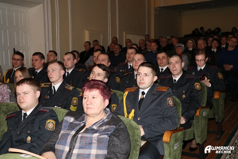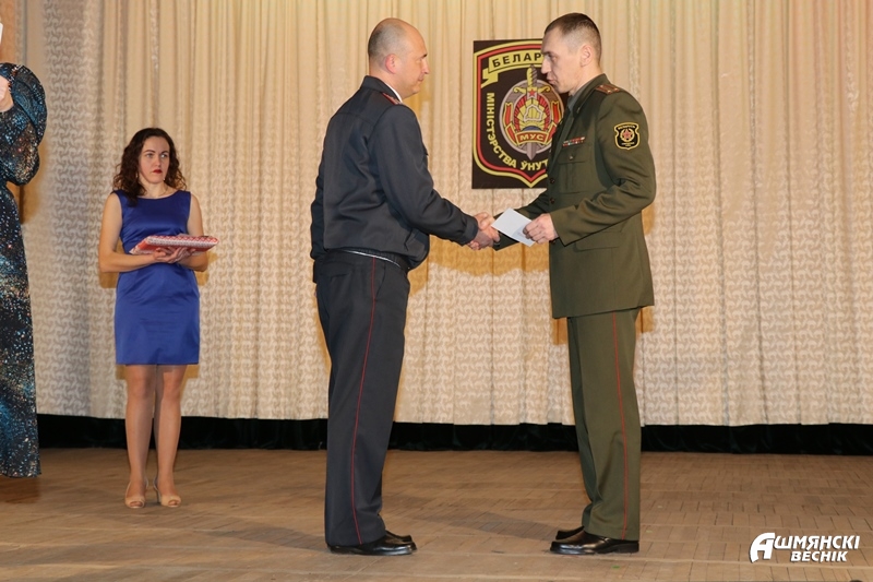 Поздравления с праздником принимали ошмянские милиционеры от ведущих праздничной программы Андрея Кузьменко и Натальи Ягелло, учащихся класса хореографии Ошмянской детской школы искусств, ученицы Кольчунской СШ Валерии Гришкойть и народного театра песни и танца “Импульс” РЦК. Много теплых слов было адресовано на торжестве в преддверии красивого весеннего праздника 8 Марта женщинам в погонах, а также женам и матерям ошмянских милиционеров. Всем присутствующим в зале женщинам были вручены цветы.