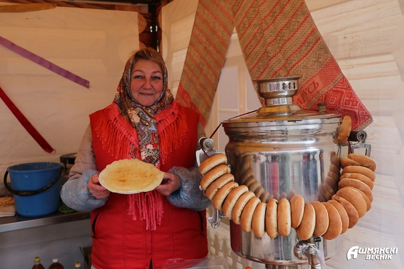 Гости и участники прониклись праздничным настроением и желанием хорошо провести время. Ремесленные ряды, торговые палатки с различными сладостями восточной и белорусской кухни, чаем, украшениями, игрушками, товарами ручной работы – все для народного гуляния и его участников. А блины, как символ Солнца на земле, будут с сегодняшнего дня и всю неделю в семьях ошмянцев — главнейшим атрибутом. На празднике зрители могли не только угоститься ароматным чаем с блинами различной начинки, шашлыками, выпечкой и глинтвейном, но и принять участие в масленичных забавах и конкурсах. Фотозоны и тематические площадки, спортивные и юмористические эстафеты «Попади блином в мишень», «Меткий Буратино», «Ходьба на колодках», «Вставь нос» были на смекалку, ловкость и силу. Главным призом во всех конкурсах и забавах были блины: с яблочной, клюквенной, овощной, грибной, мясной и медовой начинкой, продегустировать которые можно было только после участия в масленичных забавах. На празднике работали и торговые точки, реализуя свою лучшую продукцию, проводя беспроигрышные лотереи.