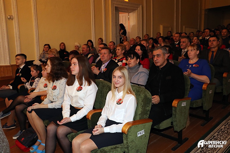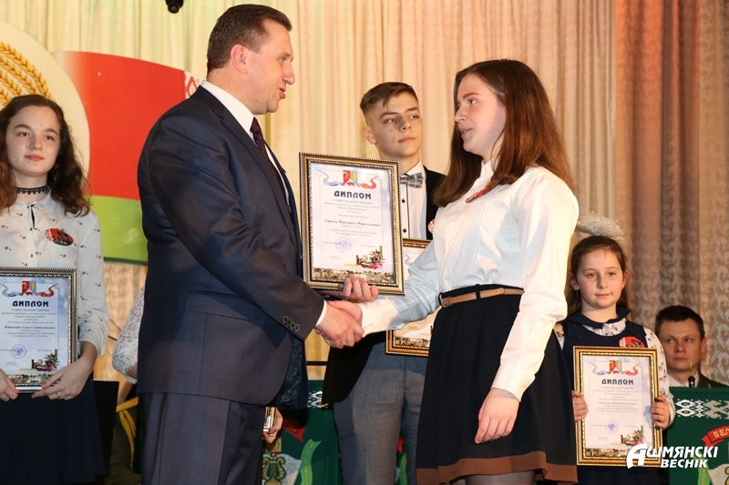 Важным этот день стал и для молодежи. На районной сцене принимали поздравления Анастасия Козловская, Полина Пашковская, Даниил Лосенок, Ульяна Петрина, Евгений Каравай, удостоенные премии со специального фонда президента Республики Беларусь по поддержке талантливой молодежи. Егор Кетрис получил денежное поощрение областной организации Фонда мира. Владислав Павилович, Вероника Лавринович, Ангелина Мацкевич, Алеся Юшкевич, Маргарита Саросек, Дарья Мисюкевич, Карина Некало, Юлия Кунц, Анастасия Новосельская, Полина Яркевич, Юлия Бражицкая, Александр Банюшевич, Андрей Дудко, Елизавета Пекер, Ульяна Астрамович, Карина Нестерова стали обладателями районной премии «Надзея Ашмяншчыны”.