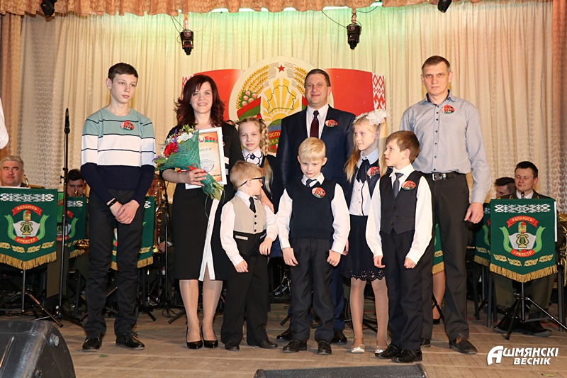 — Центральной фигурой Конституции является человек. Символично, что именно в этот день мы обновляем районную Доску почета, — отметил руководитель района и вручил сертификаты ошмянцам и коллективам, которые показали высокие результаты в трудовой деятельности, внесли значительный вклад в развитие нашего края. На районную Доску почета занесена также многодетная семья Александра Кощица и Татьяны Рапецкой. Супруги живут в агрогородке Гольшаны и воспитывают семеро детей.