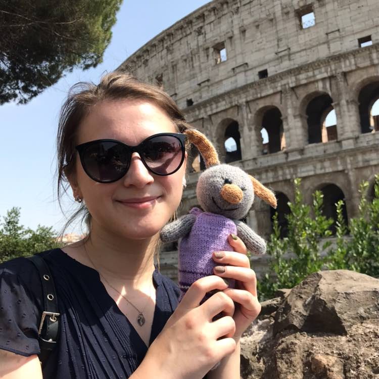 -Еще у меня есть игрушка-путешественница, которая каталась со мной по Италии. Мы как-то собирались на отдых, и я решила взять с собой что-то из своих изделий. Связала ее спонтанно, прямо в вечер перед отъездом. Мы с ней гуляли по Риму и Венеции. К слову, я ее в Италии и оставила, у мамы, она (мама) у меня там живет.