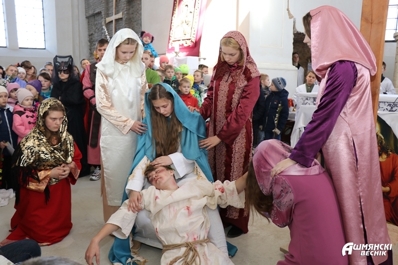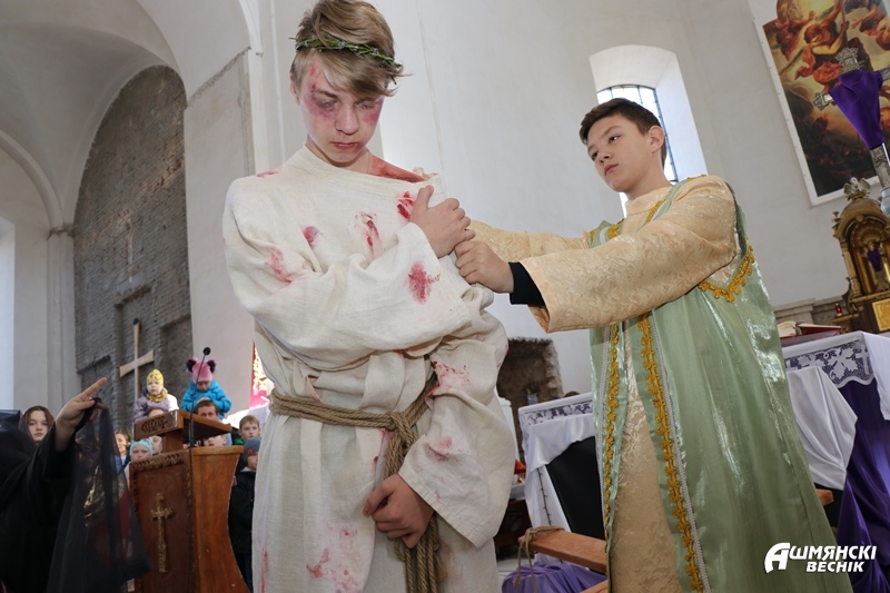В костеле Святого Михаила Архангела в Ошмянах прошла театрализованная постановка, в которой были показаны страдания Христа во время крестного пути.