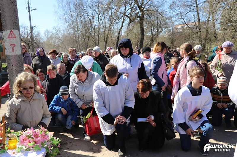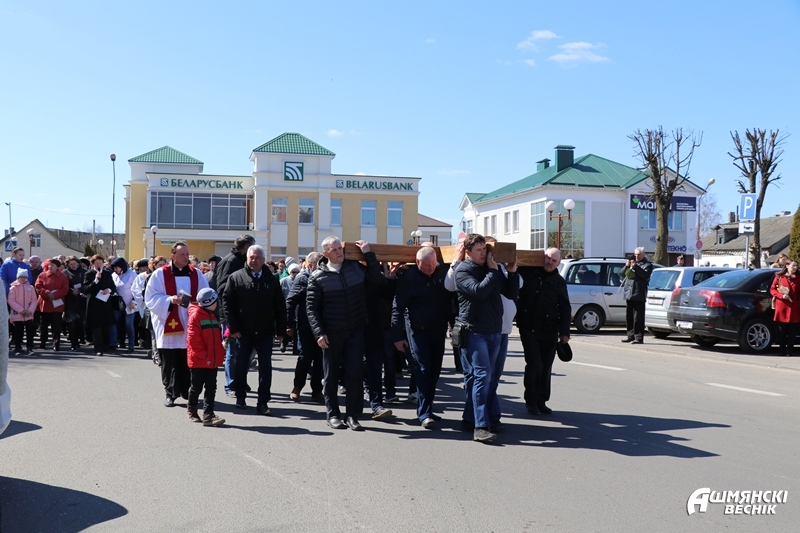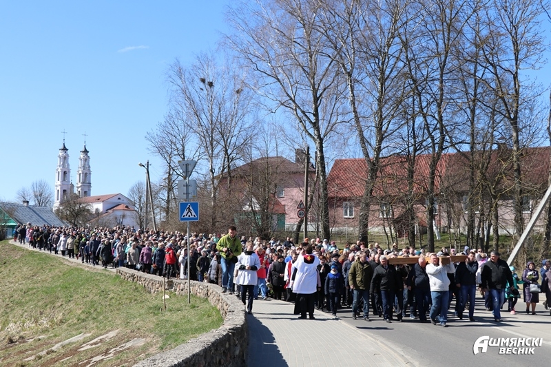 Вот уже 24 года католики из Ошмян встречают страстную неделю Крестным ходом через весь город. Верующие идут к горе, у которой когда-то был старый костел. Каждый год здесь устанавливают по кресту. Это место уже называют Голгофой.