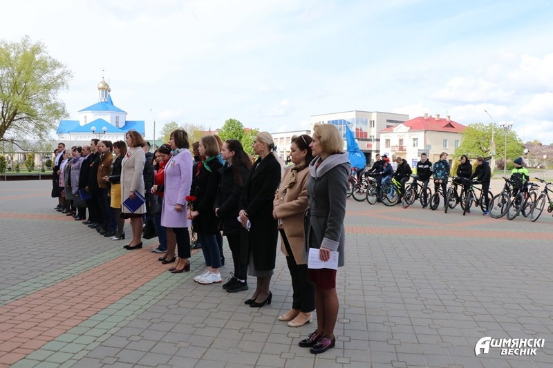 Представители трудовых коллективов, общественных организаций, пограничники, сотрудники райвоенкомата, офицеры запаса, молодежь и учащиеся учреждений образования после напутственного слова, с которым обратился председатель Ошмянского райисполкома Мирослав Саросек, отправились по нескольким маршрутам, охватывающим все памятные места района. Более ста человек повезли цветы, лампадки к местам воинских захоронений. На городской площади к ним присоединились велосипедисты.