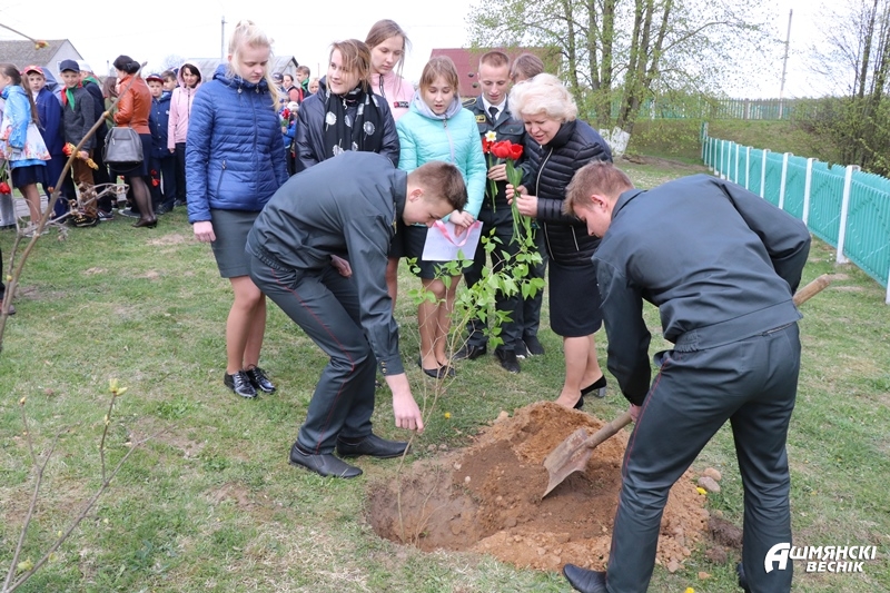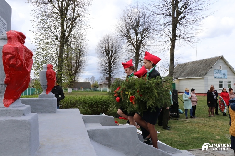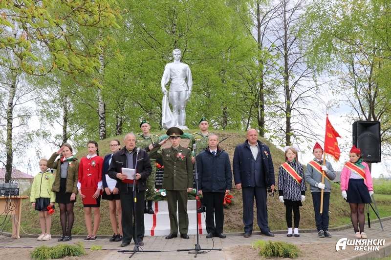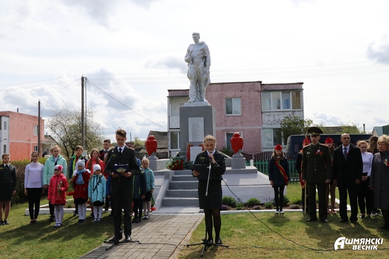 Поздравил присутствующих с наступающим Днем Победы Владимир Бельченко. Ученики выпускного класса высадили возле памятника в аллее кусты сирени. Минутой молчания почтили память ушедших земляков, а затем все вместе приняли участие в республиканской акции «Вальс Победы».