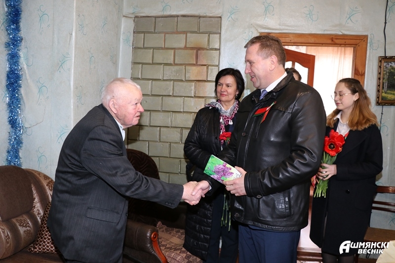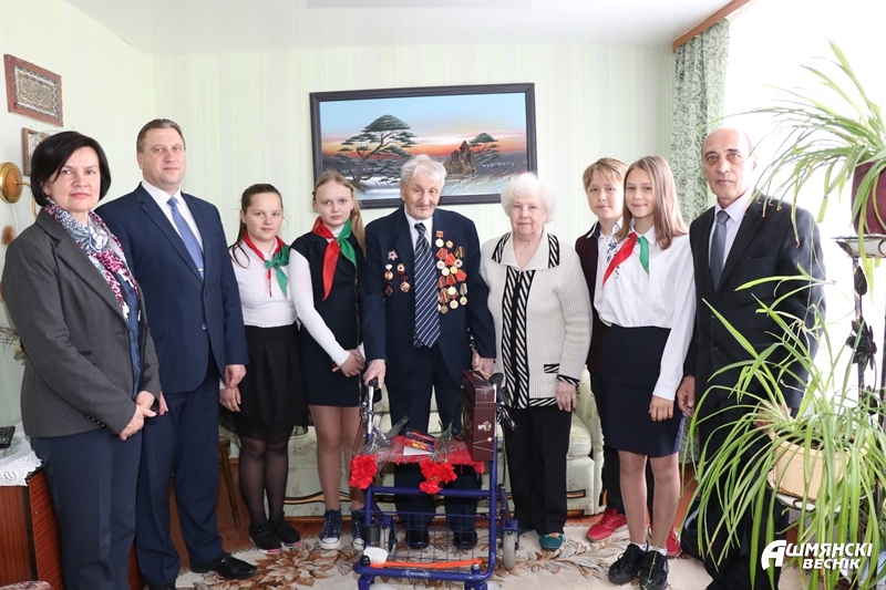 Традиционно в канун Дня Победы председатель райисполкома Мирослав Саросек лично поздравил ветеранов Великой Отечественной войны с дорогим для всех праздником. Вместе с руководителем района к ветеранам приехали председатель районного Совета ветеранов Владимир Бельченко, начальник управления по труду, занятости и социальной защите райисполкома Галина Яшина, учащиеся и педагоги СШ №1, гимназии и СШ №2.