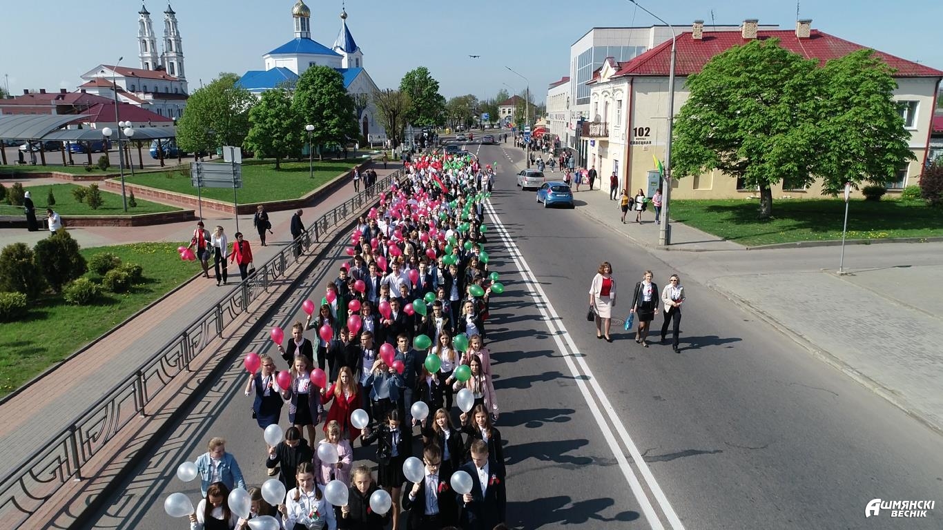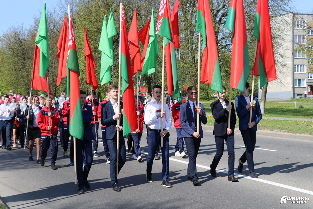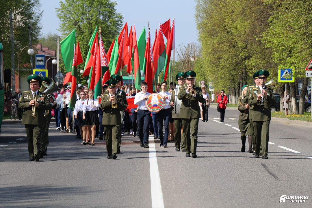 Пачаткам аднаго з найважнейшых святаў краіны стала ўрачыстае шэсце па галоўнай вуліцы горада. Восем калон са сцягамі прайшлі ад магазіна «Радуга» да стадыёна фізкультурна-аздараўленчага комплексу. Некалькі соцень школьнікаў, навучэнцаў аграрна-эканамічнага і аграрна-тэхнічнага каледжаў, маладых спецыялістаў суправаджаў аркестр Смаргонскай пагранічнай групы. Гучная музыка і масавае шэсце зацікавіла шматлікіх гараджан, якія далучыліся да калоны і прыйшлі, каб прыняць удзел у мерапрыемстве.