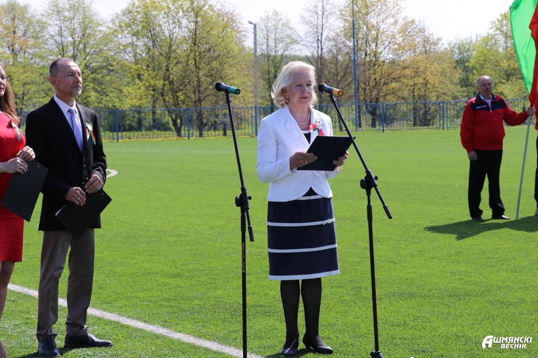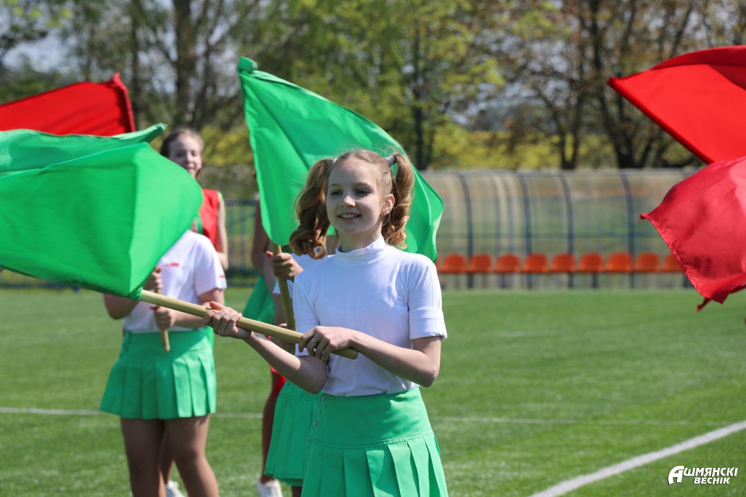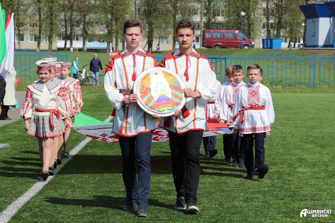 Урачыстасць разгарнулася на стадыёне фізкультурна-аздараўленчага комплексу. Удзельнікаў свята віталі намеснік старшыні райвыканкама Галіна Люткоўская, дэпутат Ашмянскага раённага Савета дэпутатаў 28 склікання Вольга Саванец, якія нагадалі пра нашы дзяржаўныя сімвалы, важнасць паважлівых адносін да іх.