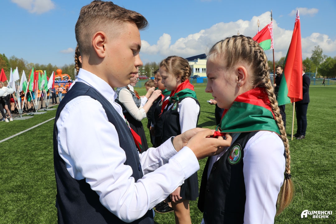 Па добрай традыцыі ў гэты святочны дзень папоўніліся шэрагі грамадскіх аб’яднанняў. Сакратар раённага камітэта ГА БРСМ Вольга Шыдлоўская павіншавала прысутных са святам і ўручыла членскія білеты. Акрамая таго, школьнікі былі прыняты ў шэрагі піянераў і акцябрат. З гэтай значнай падзеяй юных актывістаў павіншавала старшыня раённага савета ГА «Беларуская рэспубліканская піянерская арганізацыя» Анастасія Вашчук.