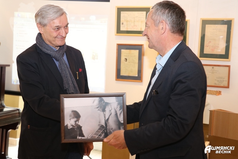 Копіі здымкаў з сямейнага архіва пан Конрад паабяцаў пакінуць нашаму музею. Яны будуць захоўвацца ў фондах разам з копіямі работ дзядулі Вінцэнта. Выявы ашмянскіх краявідаў госць з Польшчы падарыў народнаму краязнаўчаму музею імя Енджэя Снядэцкага Кальчунскай школы і Тамары Уладзіміраўне Філіповіч, якая падчас адкрыцця выставы была вельмі ўзрушана творчасцю Мешкуця. Здымак настаўніка са сваімі вучнямі ў майстэрні тагачаснай гімназіі зойме пачэснае месца ў музеі школы-інтэрната.