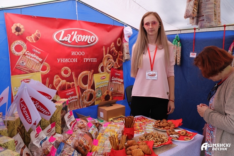 Впрочем, оценить вкус баранок и других хлебобулочных изделий смогли гости праздника. Свою продукцию представили не только сморгонцы, но и производители из других районов и областей страны: филиал ОАО «Берестейский пекарь» Барановичский хлабозавод, ОАО «Витебскхлебпром», РУП «Нива-ЗОС». Не только продажу, но и дегустацию продукции предложили посетителям ярмарки ошмянские предприятия: ИООО «Унисон-групп», Ошмянский филиал облпотребобщества, ОАО «Ошмянский мясокомбинат».