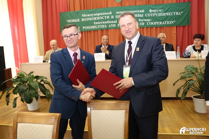 Во время экономического форума состоялось подписание соглашения о сотрудничестве между Ошмянским райисполкомом и гминой Сувалки (Республика Польша). Кроме того, контракт на поставку крахмала был подписан между ОАО «Гольшанский крахмальный завод» и фирмой DAIMAS GROUP OU (Литовская Республика).