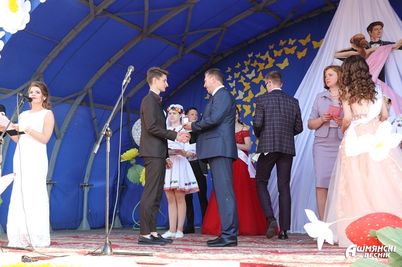 Сёлетні выпуск ў нашым раёне адметны: 39 адзіннаццацікласнікаў скончылі школу з залатым медалём і адзін – з сярэбраным. Узнагароды за штодзённую карпатлівую працу выпускнікам уручае старшыня райвыканкама Міраслаў Сарасек.