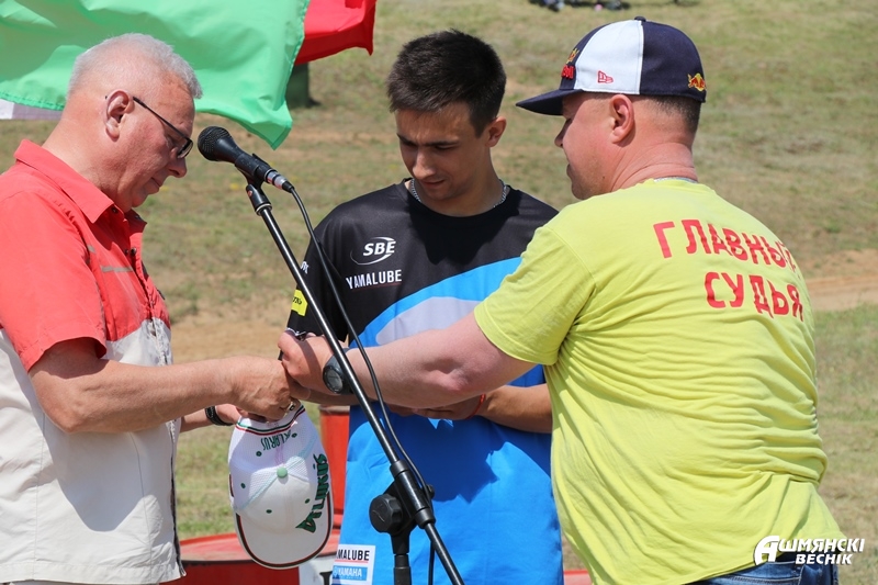 Руководитель областной структуры ДОСААФ вручил мотогонщикам, достигшим высоких спортивных результатов и выполнившим нормативы, удостоверения кандидатов в мастера спорта. Среди них — мотогонщик из Ошмян Алексей Сазанович.