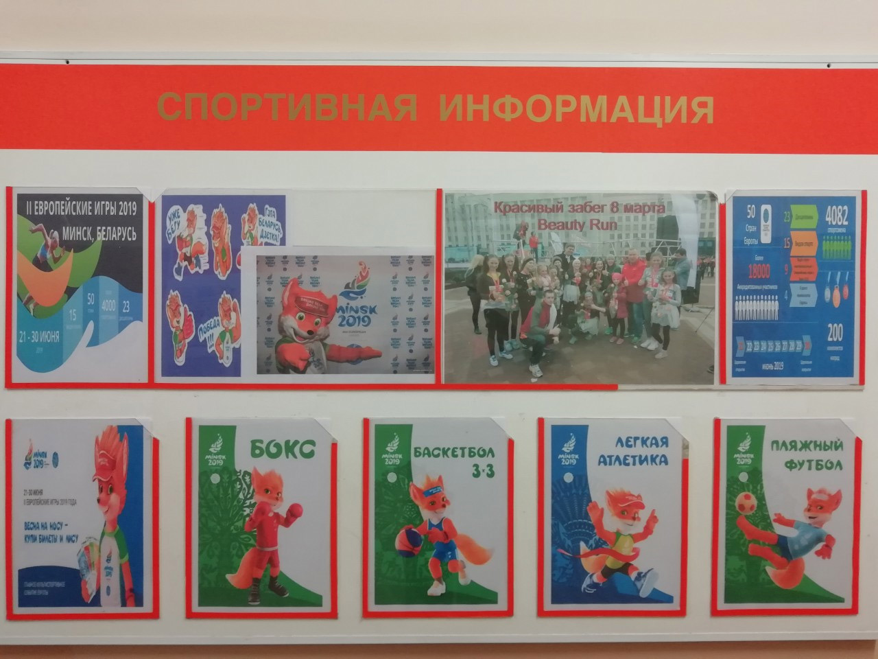 В 7 учреждениях образования созданы уголки II Европейских игр 2019, во всех остальных организациях и учреждениях размещены афиши на информационных стендах.