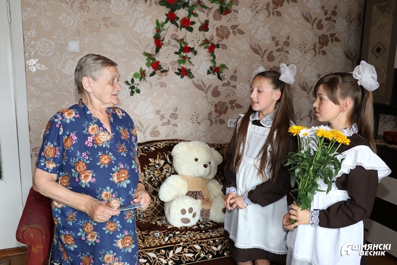 В квартиры и дома ветеранов наведались гости с подарками. Заместитель председателя Ошмянского райисполкома Наталья Станкевич поздравила каждого и вручила поздравительные открытки председателя Гродненского облисполкома и председателя Ошмянского райисполкома. А письмо-треугольник с персональными поздравлениями в честь освобождения Беларуси от немецко-фашистских захватчиков доставил от Президента страны военный почтальон. Волонтеры, торжественно нарядившись в школьную форму советской поры, поздравили их цветами, стихами и выразили убеждение, что этот маленький конвертик согреет пожилым людям душу, напомнив о трудных и неспокойных днях их молодости.