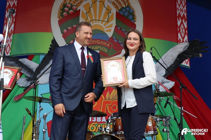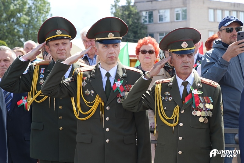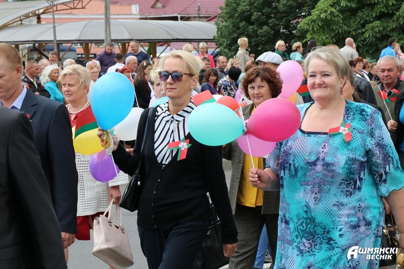 Почетное право поднять Государственный флаг Республики Беларусь и флаг города Ошмяны было предоставлено начальнику службы линии 35 киловатт и выше филиала «Ошмянские электрические сети» Виктору Варковичу, преподавателю аграрно-экономического колледжа Наталье Варкович, сверловщику 3 разряда механического цеха ОАО «Радиотехника» Мире Маньковской, оператору по искусственному осеменению крупного рогатого скота селекционно-племенного центра животноводства Ирине Шиманович.