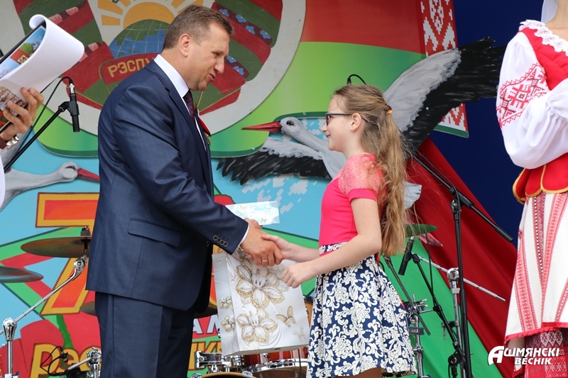 Районный праздник «Цвіці пад небам сінім, Беларусь!» начался в этом году на центральной площади города. Ошмянцев и многочисленных гостей приветствовал председатель районного Совета депутатов Николай Квяткевич: