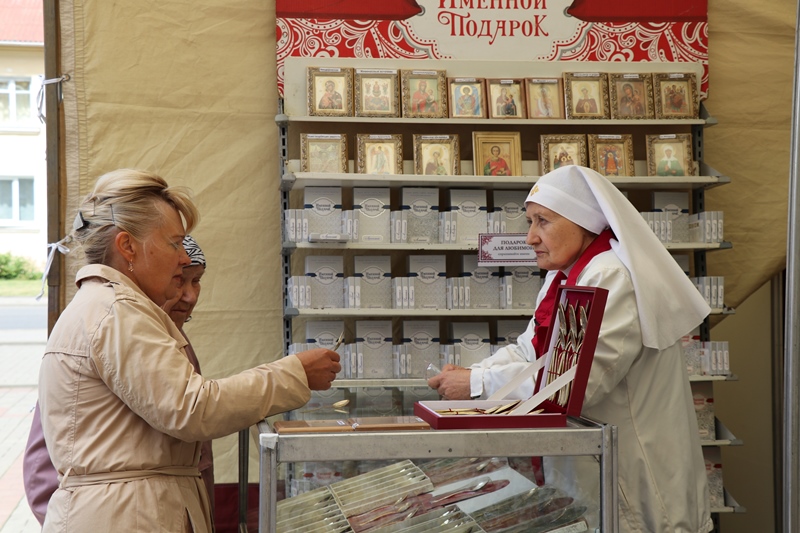 Выставка-продажа радовала ошмянцев и гостей города богатым выбором товаров. Привлекали к себе внимание торговые палатки с иконами, книгами, издающимися, в том числе, в самом монастыре, медом, собранным подворьями монастыря, целебными мазями, чаями, керамикой ручной работы. И, в первую очередь, самым главным продуктом на наших столах — монастырским хлебом – вкусным, душистым, мягким, с различными добавками и простым ржаным.