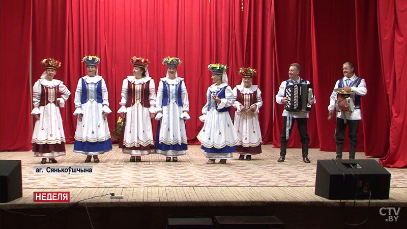 В агрогородке Сеньковщина вовсю идут репетиции. Артисты народного вокального ансамбля «Славяначка» уже переоделись в новые костюмы с белорусским орнаментом и эксклюзивные кокошники ручной работы.