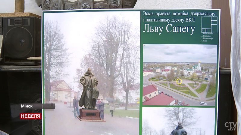 Это скульптура Льва Сапеги, который в XVI веке стал старостой города на Щаре и добился для него Магдебургского права. Над памятником великому канцлеру ВКЛ работает коллектив минских скульпторов: Владимир Пипин, Иван Миско и Сергей Логвин.