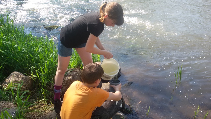 Инна Кирдик, Максим Мацкойть, Юрий Сергей и Роман Шиманович профильтровали 200 литров воды в реке Ошмянке на содержание микропластика через фильтр 100 микрон и 35 литров – через фильтр 30 микрон. Содержимое на фильтрах отправили на исследование в республиканский экологический центр.