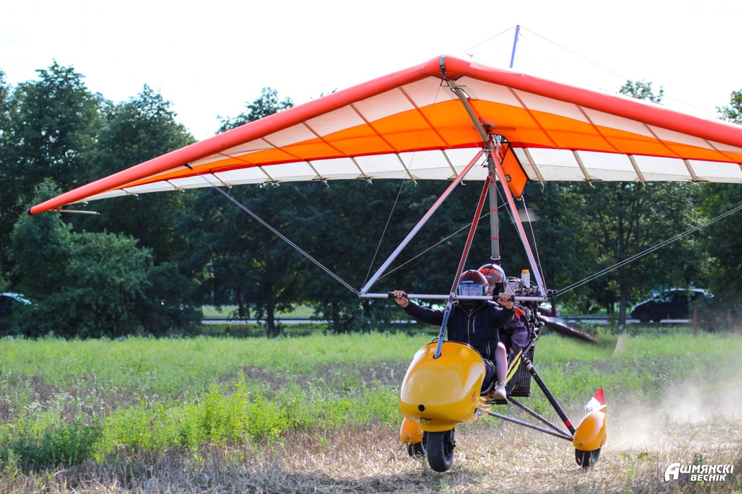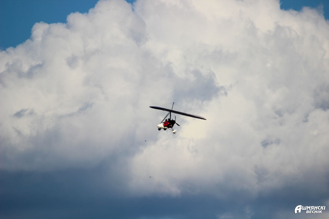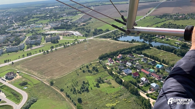 В выходные на обычно спокойном небе над Ошмянами можно было наблюдать необычные летательные аппараты — дельталеты (мотодельтапланы). Как оказалось в окрестностях нашего города обосновались представители Могилевского дельта-парапланерного клуба и за относительно небольшую сумму дали возможность ошмянцам увидеть свой город с высоты птичьего полета.