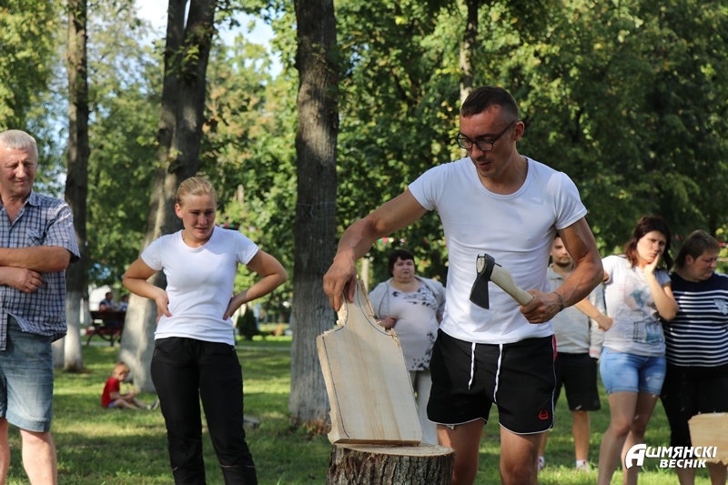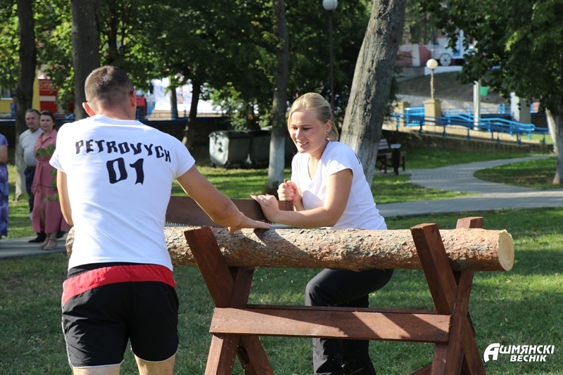 Маёру пагранічнай службы вайсковай часці 2244 Дзмітрыю і спецыялісту па сацыяльным абслугоўванні тэрытарыяльнага цэнтра сацыяльнага абслугоўвання насельніцтва Юліі неабходна было пазнаёміць журы са сваёй сям’ёй праз творчыя захапленні, прадставіць на дэгустацыю “фірменныя” сямейныя стравы і пачастункі, паказаць вясковы падворак, разам з дзецьмі прыняць удзел у сельскай спартыўнай эстафеце. Сямейная пара на хуткасць запрагала-распрагала каня, пілавала, секла і складвала дровы. У конкурсе “Майстар” за дзесяць хвілін Дзітрыю неабходна было з дапамогай сякеры выразаць кухонную дошку для нарэзкі прадуктаў. Асноўнымі “балельшчыкамі” сямейнай пары сталі іх дзеці, а таксама выконваючая абавязкi першага сакратара Ашмянскага райкама БРСМ Юлія Субач.