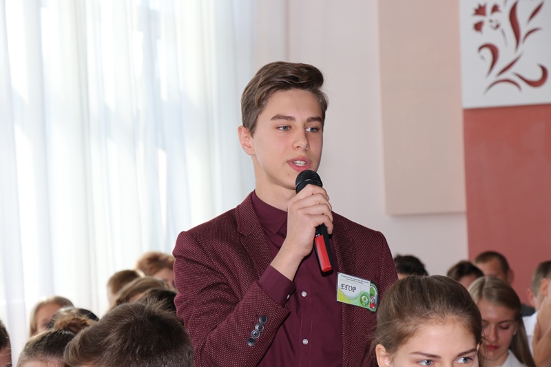 Встреча со старшеклассниками и учащимися аграрно-экономического колледжа, педагогами и руководителями учреждений образования состоялось в актовом зале СШ №2. На встрече также присутствовали председатель райисполкома Мирослав Саросек и начальник управления образования Светлана Барковская.