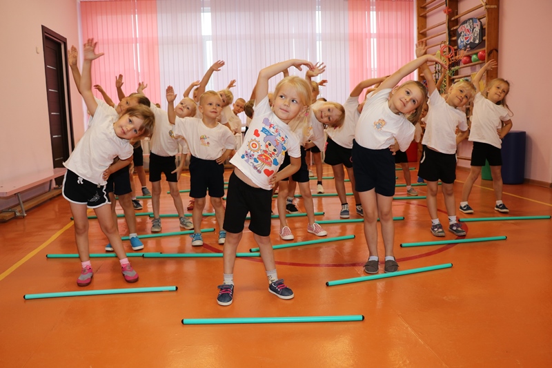 8.10 утра, а белые маечки уже «топают» длинной колонной по два, взявшись за руки, по коридору. Как ни странно, никто не зевает и не требует продолжения сна. Старшая группа воспитанников детского сада №5 г. Ошмяны под веселую музыку и подбадривающие слова воспитателя выполняет упражнения. Некоторые элементы утренней физкультуры для малышей оказались такими веселыми, что были выполнены не единожды. Название зарядки действительно соответствовало происходящему: утро у мальчишек и девчонок выдалось по-настоящему бодрым, несмотря на серость и сырость за окном.