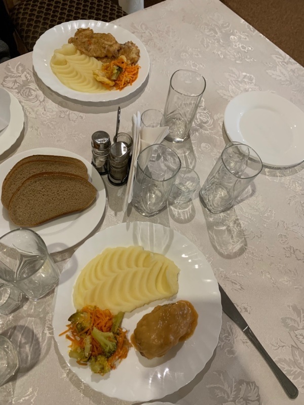 Меню здесь не ставит перед собой цель удивить: просто поесть – да. Стандартные блюда, лишенные деликатесов, и отсутствие кулинарных изысков. Практически как дома: сытно и, стоит сказать, вкусно, хоть и пробовали мы там не все. Для особых случаев типа Нового года разрабатывается другое меню: как правило, меняются названия и цены, состав блюд по большей части остается неизменным.