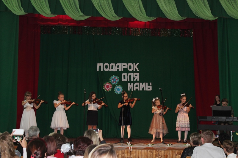 Со сцены звучали музыкальные поздравления от Егора и Ульяны Кетрис для многодетных мам, ведь в школе занимаются более 130 учеников из многодетных семей. Весело и задорно танцевали польку ученики хореографического отделения (учитель Анна Кедо). Не забыли в праздничный день и о бабушках. Для них прозвучала песня «Бабушка-подружка» в исполнении Анны Винцелович, Ксении Сальмонович, Динары Шимановской и Надежды Высоцкой. Мелодии из детских мультфильмов в исполнении Юлии Бражицкой и Александра Абрамовича напомнили всем о детстве.