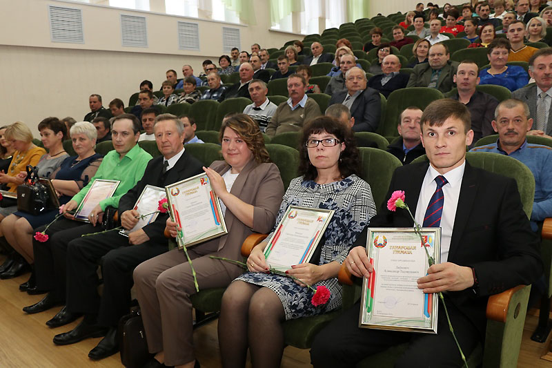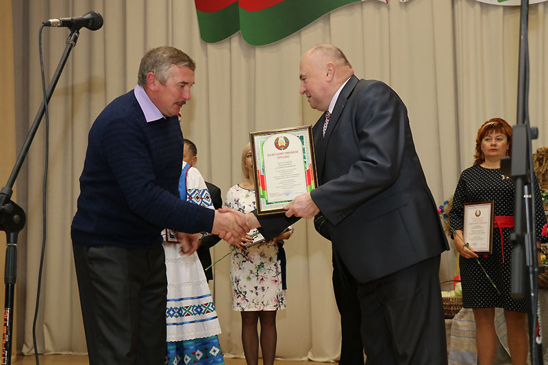 Кульминационным моментом торжества стало чествование лучших работников сельского хозяйства. На праздничную сцену приглашались победители соревнования за достижение высоких показателей на уборке урожая. Среди хозяйств первое место занял КСУП «Гольшаны». Второе – экспериментальная база «Боруны», третье – КСУП «Ошмянский рассвет». А среди коллективов сельхозорганизаций по достижению лучших результатов на заготовке травяных кормов лидерами стали экспериментальная база «Боруны» и КСУП «Гольшаны».