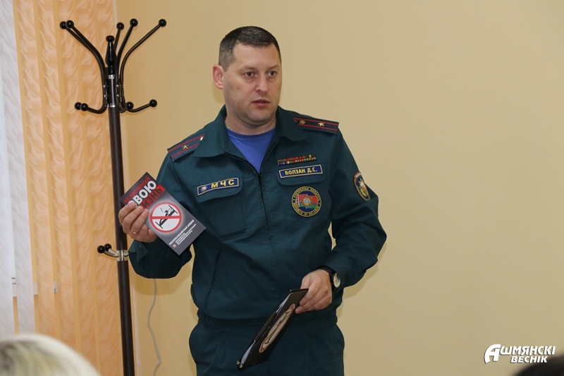 Разговор на актуальную тему начался с печальной статистики о пожарах, которые ежегодно уносят жизни большого количества людей. Только в этом году в республике жертвами огненной стихии стали 348 человек. Более 30 человек погибло в огне в Гродненской области. На территории Ошмянского района с начала года произошло 25 пожаров. К счастью, обошлось без жертв, трех человек удалось спасли. В прошлом году за этот период случилось 35 пожаров, в которых сгорело 4 человека.