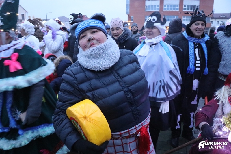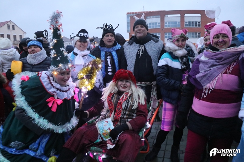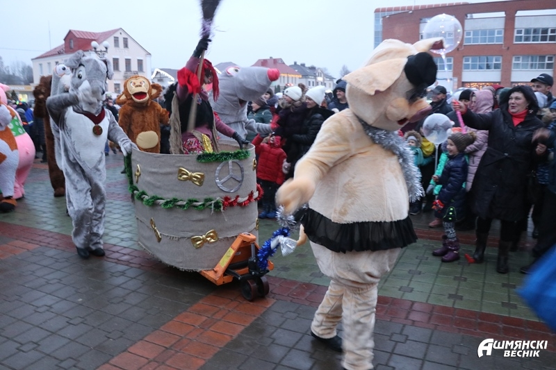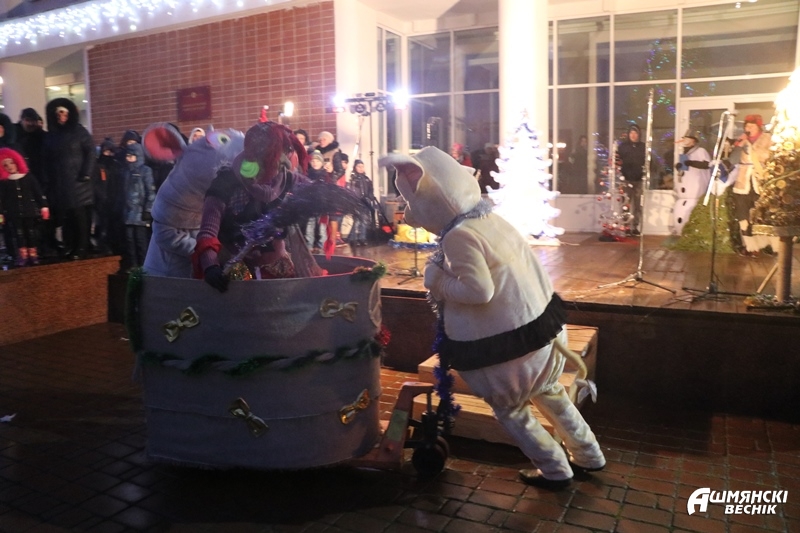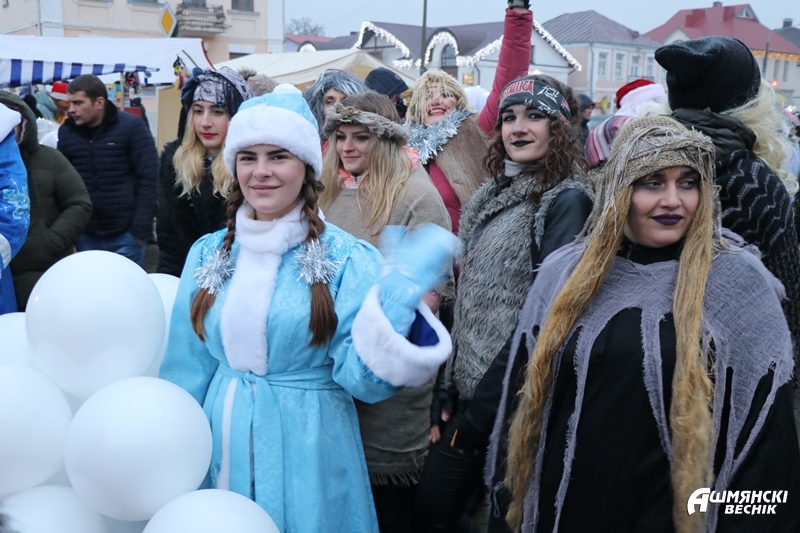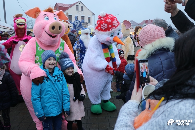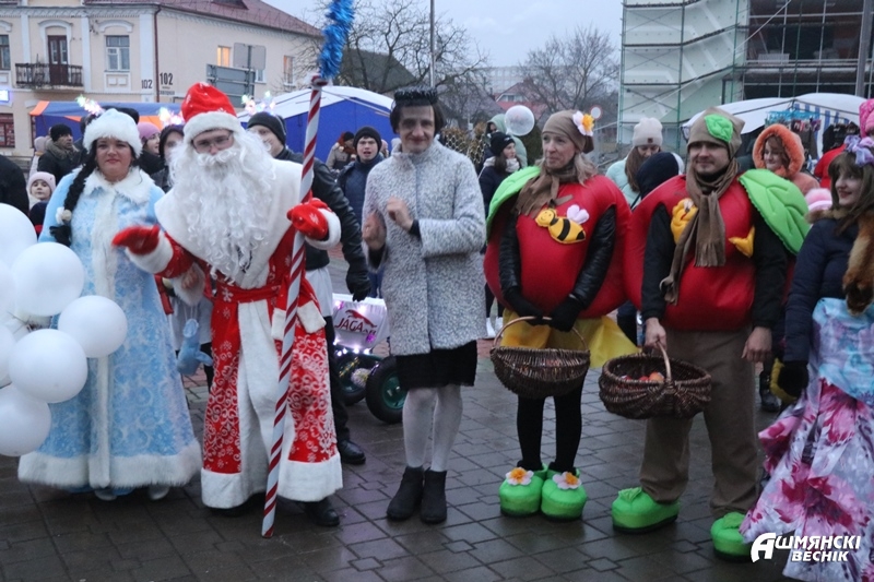 Даже дождь не смог испортить настроение ошмянцам, пришедшим на праздник. Яркие гирлянды и лампочки, сказочные персонажи и хорошее настроение – так можно описать субботний вечер на площадке у здания райисполкома в Ошмянах. А еще песни, танцы, хороводы, развлечения для детей и палатки со сладостями и сувенирами.