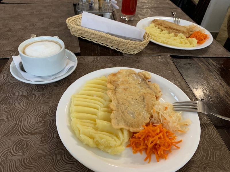 Меню небогато на сложные блюда и деликатесы, упор делается на народную кухню. Просто, сытно, вкусно и недорого. Алкоголь преимущественно белорусского производства. Также есть вариант взять кофе с собой, что могут предложить далеко не все заведения города. А что предложит кафе на обед? Проверили, посетив заведение и попробовав часть позиций.