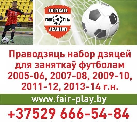 -Дастаткова скантактаваць з намі (+375-29-6665484, www.fair-play.by), узяць даведку ва ўрача і наведаць пробную трэніроўку. Калі дзіцяці спадабаецца на гэтай трэніроўцы – яно залічана ў акадэмію!