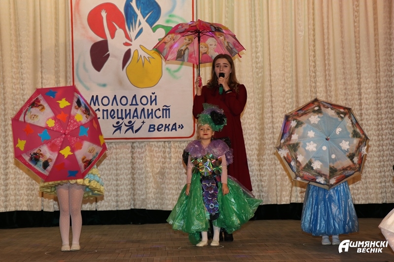 — В текущем году в организации района пришел 121 молодой специалист. Приятно, что восемь из них изъявили желание представить свою профессию и проявить творческие способности на этой сцене, — отметила в приветственном слове главный специалист отдела идеологической работы, культуры и по делам молодежи Екатерина Толочко. – Желаю вам профессионального роста на нашей ошмянской земле, понимания и поддержки в своих трудовых коллективах, уверенности и возможности самореализоваться. А что касается сегодняшнего мероприятия, то пусть ваши таланты засияют на этой сцене во всей красе. Удачи вам, а нашим зрителям, которые пришли вас поддержать, хорошего времяпрепровождения.