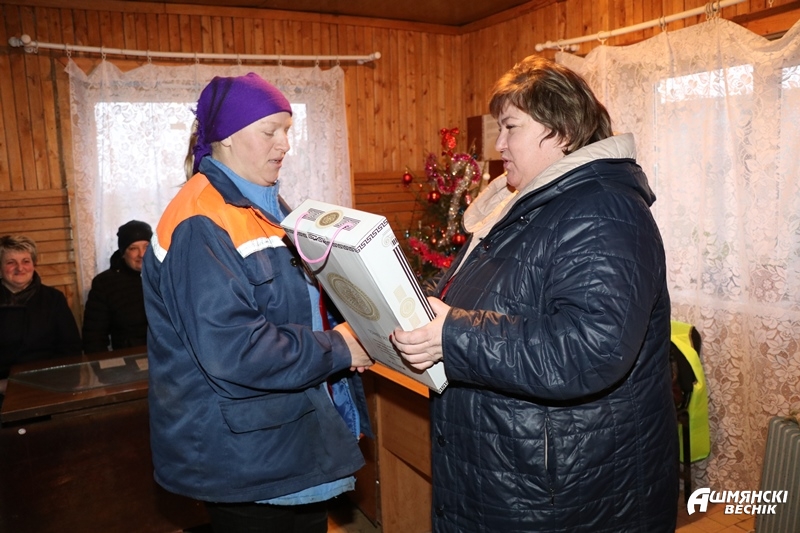Общаясь со специалистами и работниками, убеждаемся, что почивать на лаврах никто не собирается. Главная установка — обеспечить прочную кормовую базу для животноводства. Председатель Ошмянского райкома профсоюза работников АПК Раиса Турлай поблагодарила работников отрасли за труд. В ходе акции «Наш животновод» она вручила подарки райкома профсоюза животноводам Наталье Яковчик, Иосифу Борткевичу, Николаю Заблоцкому и Ивану Жельветро. О положении дел в сельхозорганизации рассказала присутствующим председатель профкома хозяйства Гражина Тарасевич.